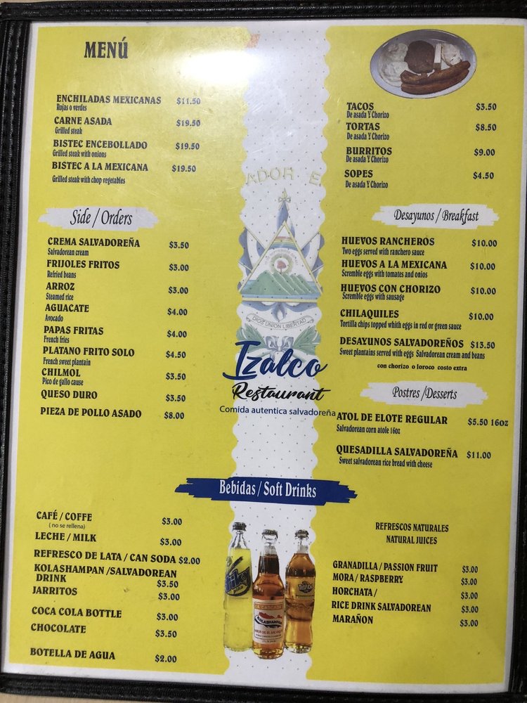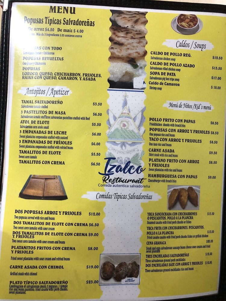 Izalco Restaurant in Chicago, specializing in Salvadoran cuisine, offers a diverse menu that includes popular dishes like Grilled Steak Plato, Chicken Enchilada, and Yuca Frita con Chicharron. Customers rave about the authentic flavors and generous portions, with particular praise for the Pupusas, described as the best in Chicago. The unpretentious atmosphere and friendly service add to the overall dining experience, making Izalco a top choice for those craving homestyle, flavorful Central American fare. Don't miss out on their signature Loroco Pupusa and refreshing Agua de Marañon. With easy parking options and a range of amenities, Izalco Restaurant promises a satisfying meal that will have you coming back for more.